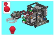 Grab-n-Go is a NXTCAM controlled vision robot that can locate and pick up a red ball. It combines the drive motor assembly from the 8275 Bulldozer, the track supports from the 8294 Excavator, and Paul Tingey’s Clamp-n-Lift.