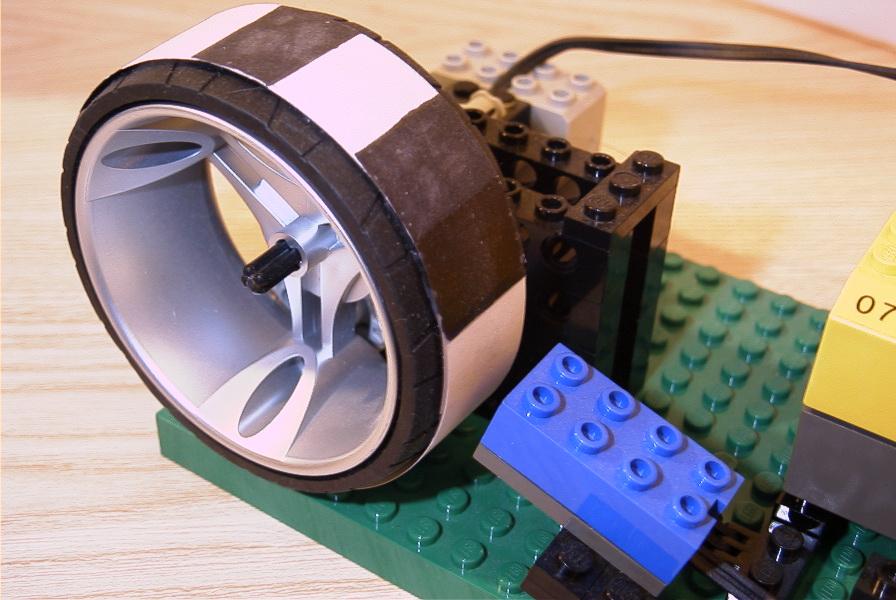 light sensor scans a piece of paper glued to a wheel. The paper has